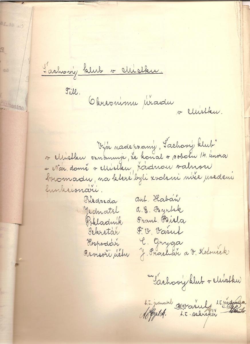 ŠACHOVÝ KLUB V MÍSTKU – HVĚZDA TŘICÁTÝCH LET