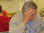 Ještě nešťastnější průběh měla partie Martina Tauše proti Jaroslavu Lepíkovi, kde černý již v rané části partie získal zdravého pěšce a dlouhou dobu měl na šachovnici vyhranou pozici. Přechod do věžové koncovky se 2 pěšci navíc však neprovedl nejlépe a pozice s pasívní věží byla zřejmě remízová. Přesto černý stále bojoval o celý bod – jenže při hledání nejlepšího postupu se zamyslel trochu více – a překročil čas. Tato ztráta dobře rozehrané partie proti nejvýše nasazenému hráči asi bude J. Lepíka ještě nějakou dobu mrzet…? – ale i taková je šachová hra. M. Tauš, tak při scházející jedné partii zůstává jen o půlku bodu za dosud vedoucím S. Sysalou.